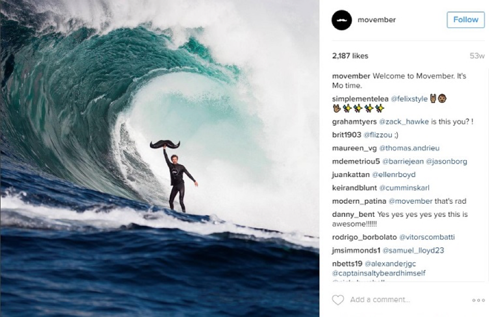 The Movember Foundation is a global charity that raises funds and awareness for men’s health. Movember’s mustache culture revival has ignited a movement of passionate supporters, represented in the brand’s humorous Instagram posts.