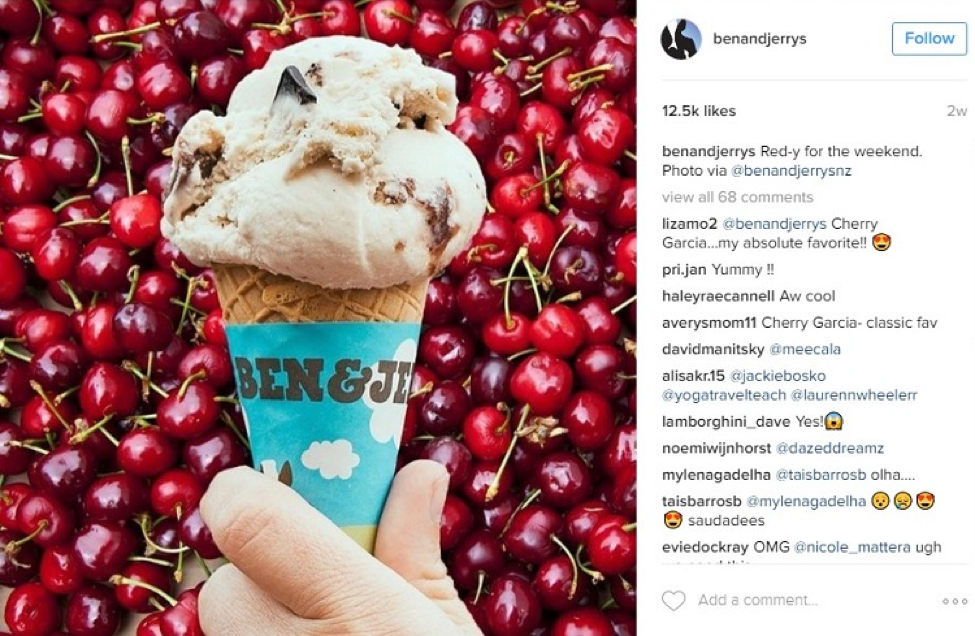 One of the first brands to advertise on Instagram, Ben & Jerry’s realized that their delicious product goes hand in hand with visual storytelling. Their creative posts and captions are as clever as their ice cream flavor names, and Ben & Jerry’s dominates Instagram advertising in terms of targeting and frequency of posts.